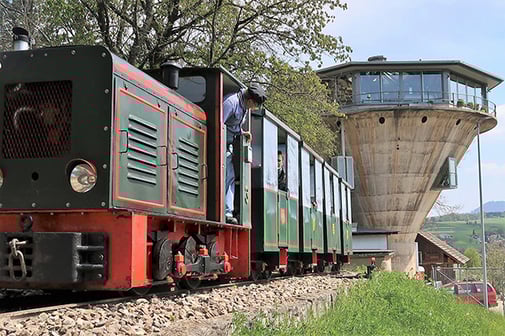 Mit der Bergwerkbahn vom Silo Richtung Stollen.